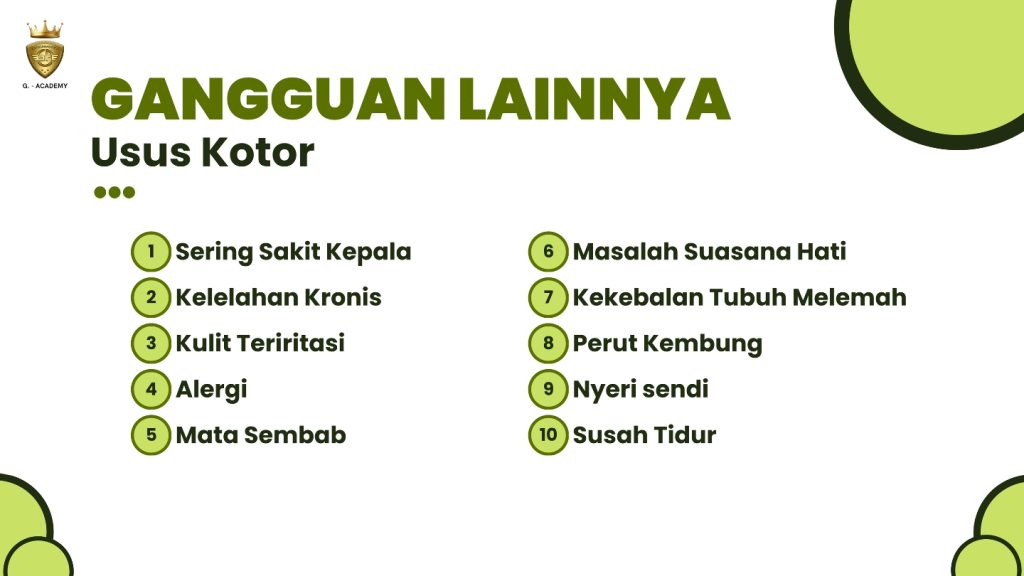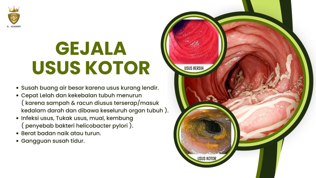 Usus yang kotor mengacu pada kondisi di mana saluran pencernaan dipenuhi dengan sisa makanan, toksin, lendir berlebih, dan feses yang menumpuk. Hal ini dapat menyebabkan gangguan pencernaan, perut kembung, sembelit, kelelahan, hingga gangguan penyerapan nutrisi. Kondisi ini membutuhkan langkah Colon Cleansing ………..